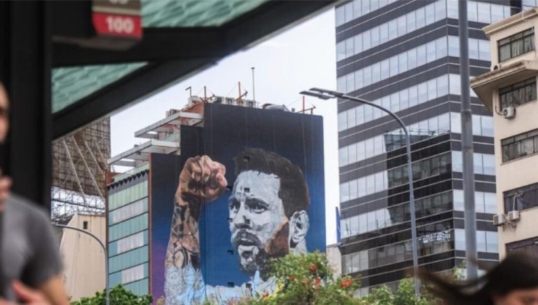 El artista arrancó con la instalación hace poco más de 10 días y actualmente ya se puede ver el trazado definitivo del trabajo: es un Messi con cara brava, levantando el puño derecho en señal de victoria. El trabajo estuvo basado en una ya famosa foto del 10 durante el Mundial de Qatar, donde el rosarino llevó a la Selección Argentina a ganar el máximo título del fútbol.