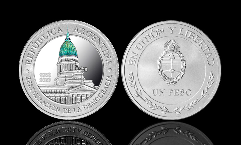 El Banco Central de la República Argentina (BCRA) emitió una moneda de plata en conmemoración a los 40 años de la restauración de la democracia en el país. La moneda tendrá la denominación de un peso y la imagen del Congreso de la Nación.