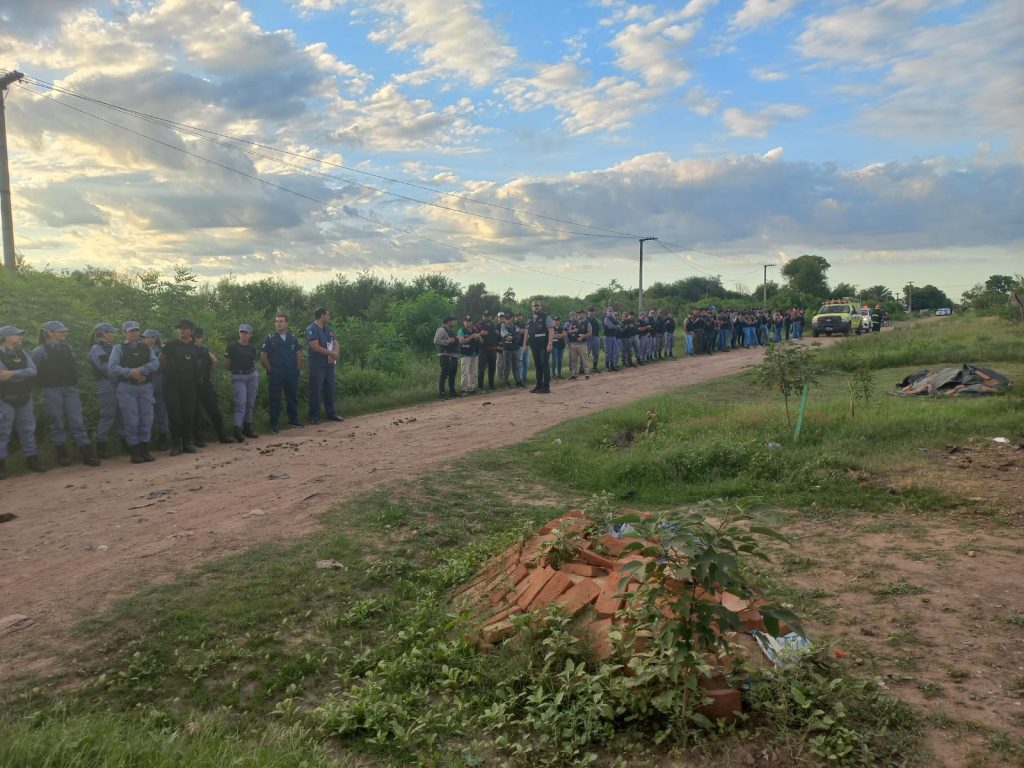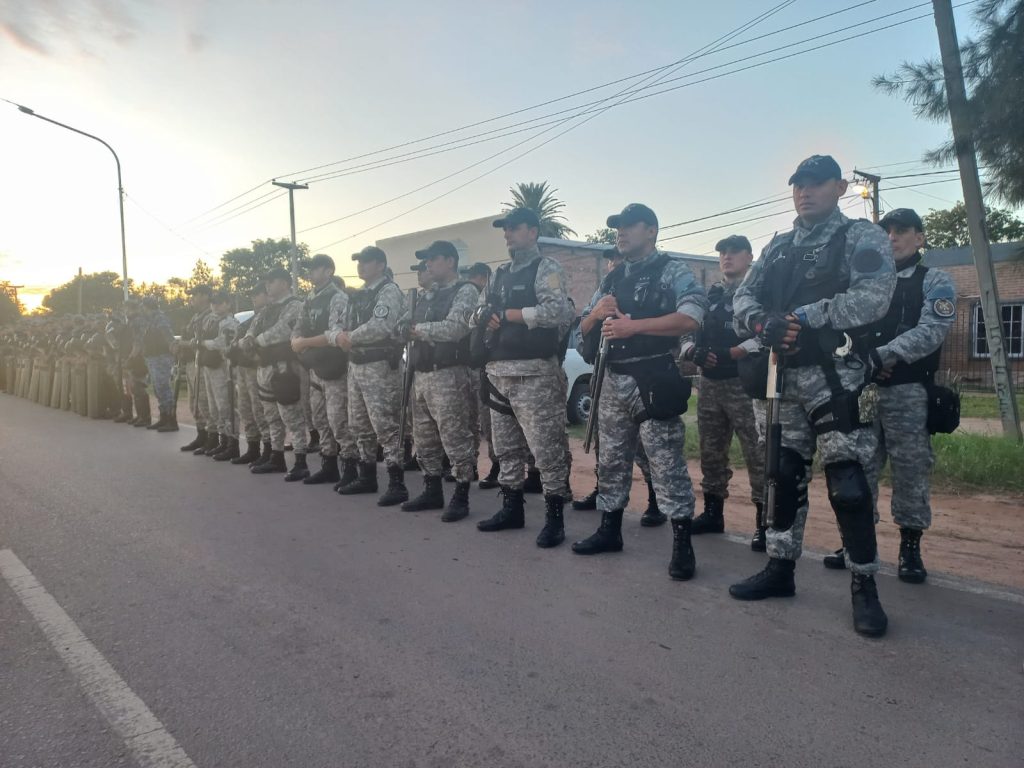 Desde las primeras horas del día, un importante despliegue policial, con la participación de todas sus unidades, Divisiones Especiales, Bomberos, miembros del Poder Judicial y la Unidad de Protección Integral, se hizo presente en el sitio para llevar a cabo el desalojo de las familias que habían ocupado el terreno, las cuales ya habían sido notificadas previamente de esta medida.