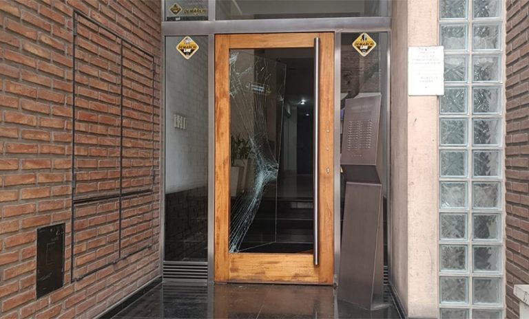 Un grupo de personas intentó ingresar por la fuerza a un edificio céntrico ubicado en Urquiza al 1800 y ocasionó destrozos en el frente de la propiedad.