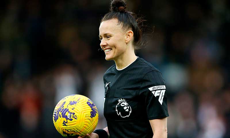 La árbitra Rebecca Welch se convirtió hoy en la primera mujer en dirigir un partido de la Premier League inglesa de fútbol, al controlar en encuentro entre Fulham y Burnley por la 18va. fecha.