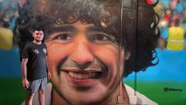 González Catán: el mural maradoniano de Mauricio Pepey