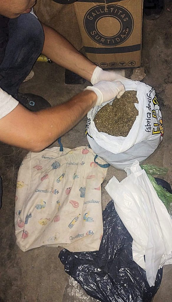 De la labor de b煤squeda de los antinarc贸ticos, se pudo detectar una grande con Cogollos y 179 bochitas envueltas en polietileno color negro, con un total de 1 kilo 770 gramos de Marihuana.