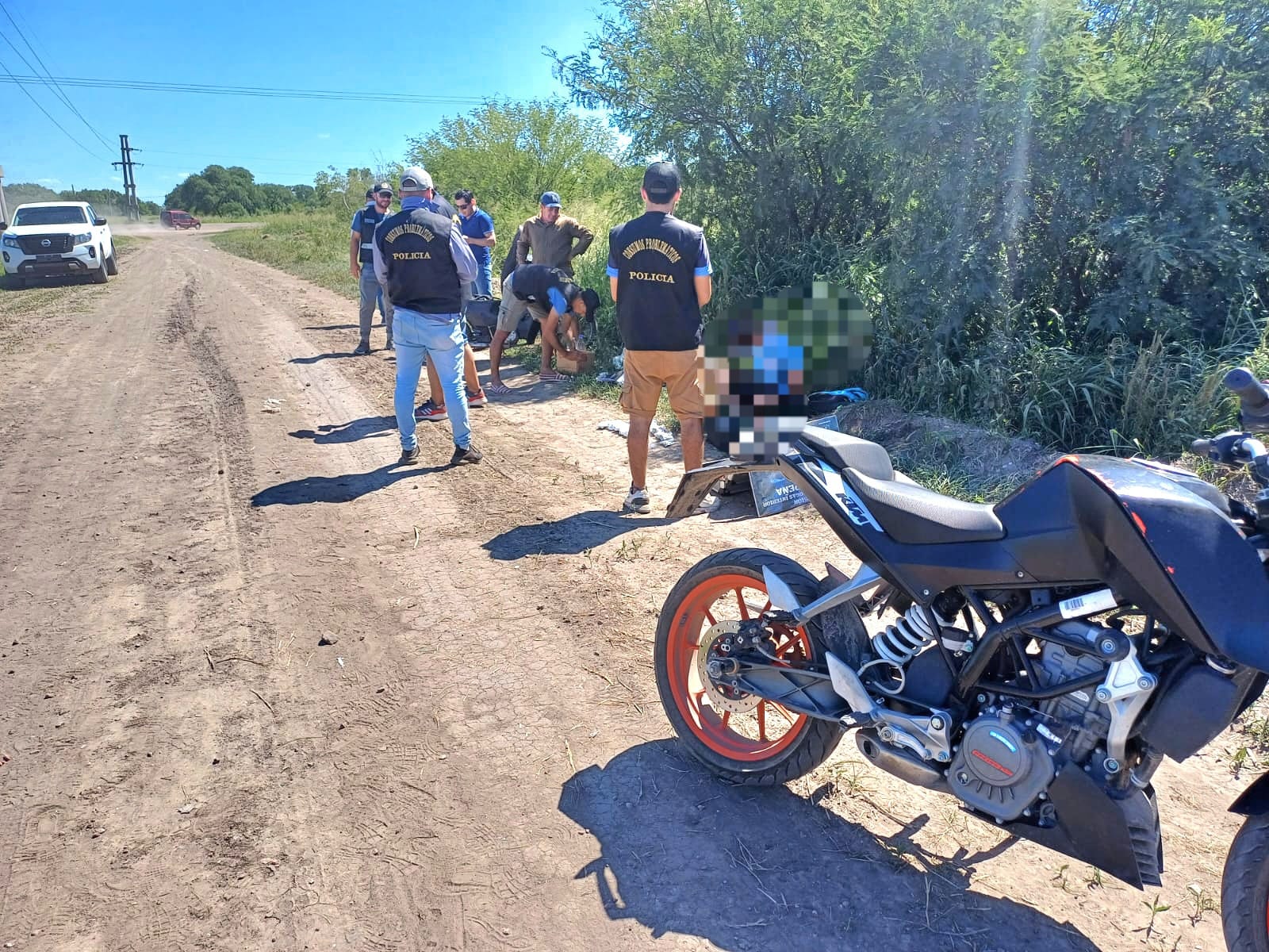 En horas de la siesta, cerca de las 15, observan acercarse a esta persona a bordo de una motocicleta tipo 110cc., con un acompañante a quienes le realizan las señales de detención y los sujetos eluden el control acelerando su marcha cuando el sujeto de atrás con mochila salta de la moto y se introduce en un yuyal huyendo a pie tratándose del investigado, que fue capturado por los agentes.