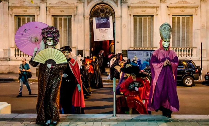 Los personajes de la Comedia del Arte forman grupos temáticos como «Los Viajes de Marco Polo», «Cartas del Tarot», «Pierrot y Colombina», «Los Caballeros Templarios», entre otros. Al regreso del recorrido, en las escalinatas del museo llega una velada musical que involucra un conjunto de cámara con la novedad de contar con una Tiorba, un instrumento de cuerdas pulsadas de la época barroca, junto a un coro veneciano.