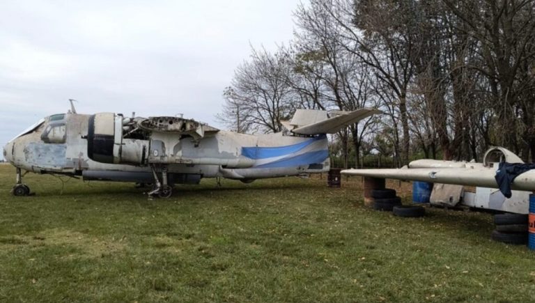Se trata de un Grunman Tracker S 2-G, una mole metálica de 8 metros de ancho y 10 toneladas, similar a las aeronaves de combate submarino utilizados durante el conflicto bélico de 1982, y que llegó al municipio del oeste del Conurbano desde Bahía Blanca.
