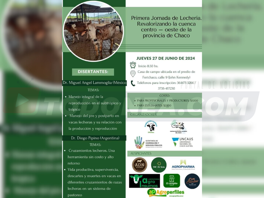 Las disertaciones estarán a cargo de los doctores Miguel Angel Lammoglia (México) y Diego Pipino (Argentina). Los temas que se tratarán serán los siguientes: manejo integral de la reproducción en el subtrópico y trópico; manejo del pre y postparto en vacas lecheras y su relación con la producción y reproducción; cruzamientos lecheros. Una herramienta sin costos y alto retorno; vida productiva, supervivencia, descartes y muerte en vacas de diferentes cruzamientos de vacas lecheras, en un sistema de pastoreo.