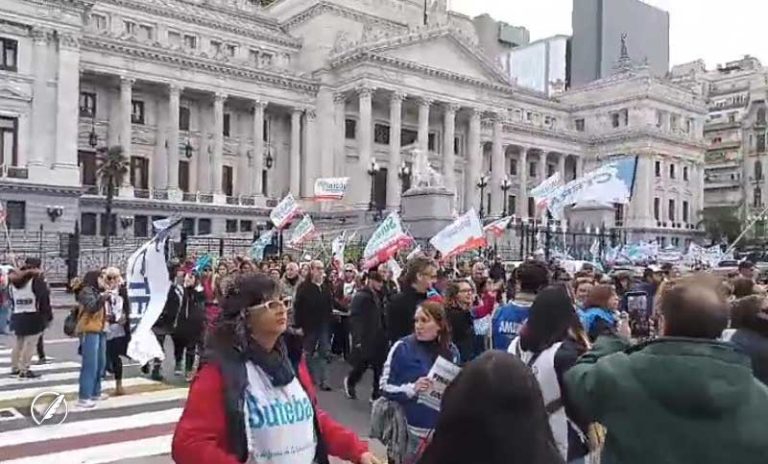 Mientras tanto, en las calles aledañas al Congreso, organizaciones sociales y docentes se manifiestan para exigir la recomposición del fondo para los maestros.