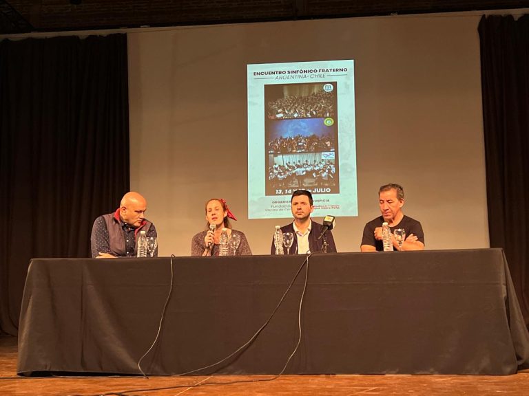 En conferencia de prensa, el intendente Bruno Cipolini, junto a Dito Velásquez de la Orquesta Vientos de Cambio, Nilce Bravo y el secretario de Relaciones Institucionales, Eduardo Molina, presentaron el Encuentro Sinfónico Fraterno Argentina – Chile, que se desarrollará en distintos puntos culturales de Sáenz Peña.