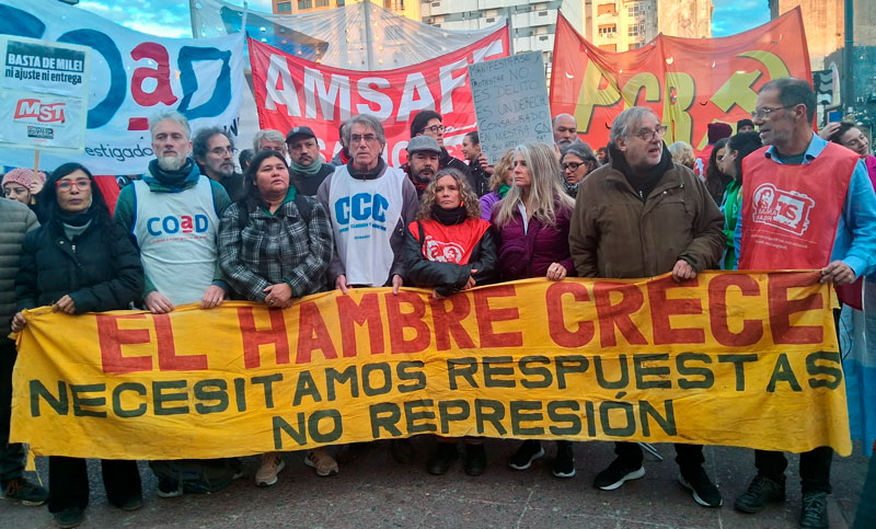Convocados desde temprano en la Plaza Montenegro los manifestantes marcharon al Monumento Nacional a la Bandera con el pedido de “libertad para los presos políticos, el rechazo a la Ley Bases y desdeñaron “las políticas de ajuste y su secuela de despidos, tarifazos y alza de la pobreza”.