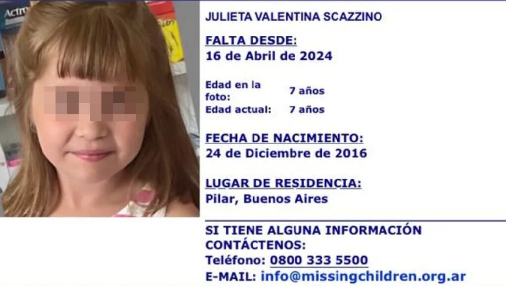 Julieta Scazzino, la nena de 7 años que estaba desaparecida desde hace cuatro meses, fue encontrada en Chile tras ser intensamente buscada por su papá Julián, vecino de Pilar. La principal sospecha es que su madre se la llevó al país trasandino, donde la Interpol, además, detuvo a la mujer.