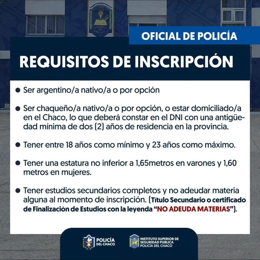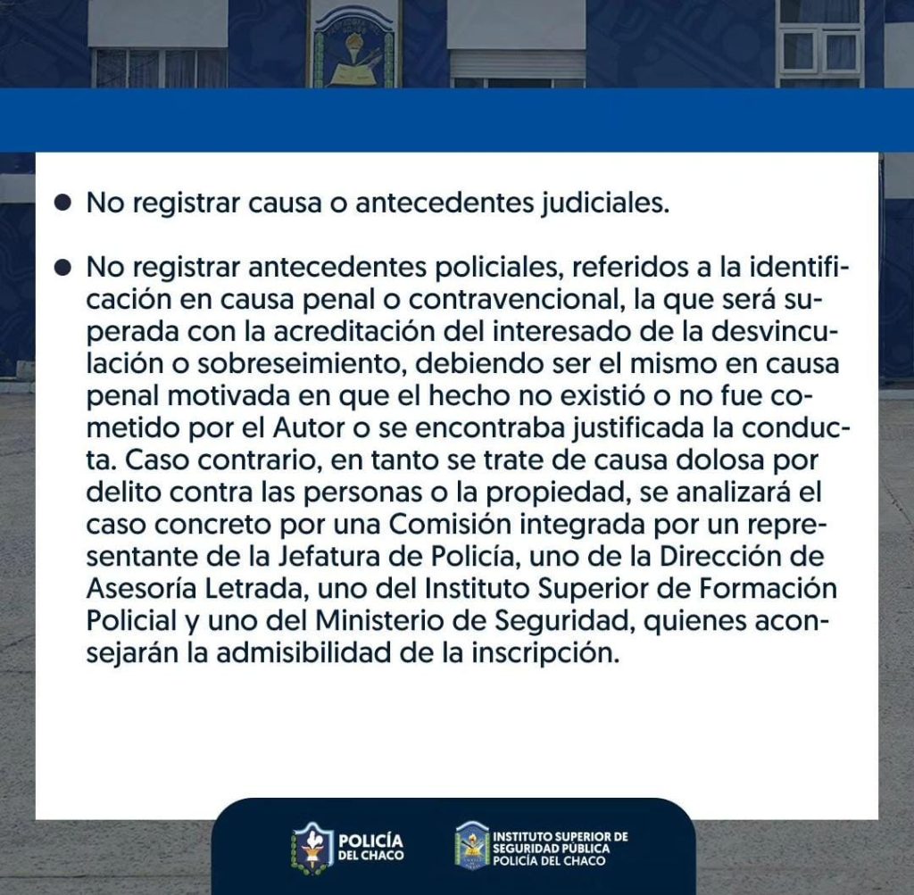 🔴 PROVINCIALES | Requisitos para formar parte de la Policía del Chaco