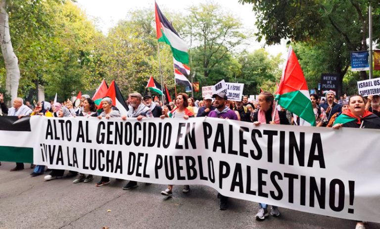 La movilización, que ha sido organizada por la Red Solidaria contra la Ocupación de Palestina (RESCOP), ha abanderado proclamas como “un año del genocidio en Palestina y 76 años de colonización israelí” y han exigido “libertad para el pueblo palestino”, que, denuncia, está siendo víctima “del apartheid y de la ocupación” israelí.