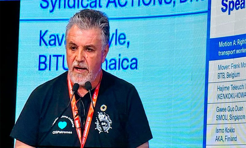En ese sentido, el Capitán pidió a los trabajadores del mundo “esa solidaridad que necesitamos los trabajadores y los pueblos del sur para que tengamos la posibilidad de una mejoría de nuestro estándar de vida” al tiempo que dijo “tenemos derecho al agua potable, tenemos derecho al aire limpio. Por eso exijo y solicito un apoyo permanente con esta causa del transporte sustentable; en realidad una vida sustentable”.