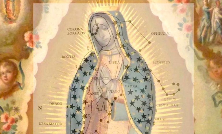La constelación de Virgo, representada sobre el corazón de la Virgen, se ha visto como una confirmación de que la figura que aparece es la Virgen Santísima. Y la constelación de Leo en el vientre de María, recuerda que la imagen de la tilma representa a una mujer gestante del Rey del Universo.