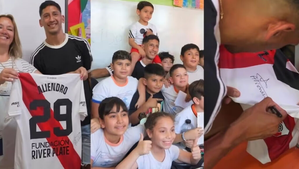 Lucía de la Vega, directora ejecutiva Fundación River Plate sostuvo sobre la visita de Aliendo a la escuela: “A partir de conectar a los ídolos con sus orígenes, ya sea con la escuela o el club de la infancia, buscamos traer un mensaje a los chicos que están sentados en los mismos pupitres en los que se sentó ese ídolo alguna vez, un mensaje que los inspire a perseguir sus sueños y a poner en el centro de la escena valores necesarios para alcanzarlos como esfuerzo, perseverancia y superación”.