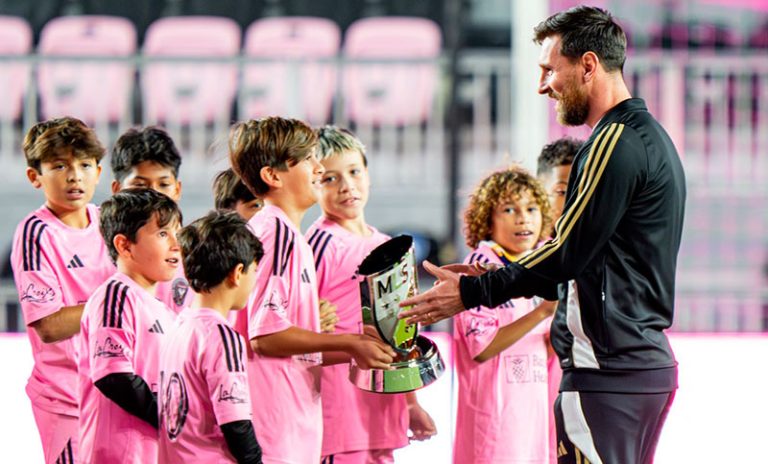 En el video que recibe el premio por parte de los jugadores de la Academia del Inter Miami, entre ellos sus hijos, el astro argentino declaró: “Es un honor recibir este premio de mano de ustedes. Es un orgullo verlos entrenar, soy muy feliz en esta ciudad y en este club que está en crecimiento. Los invito a que sigan peleando y luchando por sus sueños”.