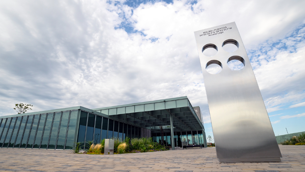 Malba Puertos se encuentra a solo 50 kilómetros de la CABA, en el acceso a Puertos, un desarrollo residencial sustentable. Su arquitectura combina diseño moderno con respeto por el paisaje natural, convirtiéndose en un puente entre el arte y la naturaleza.