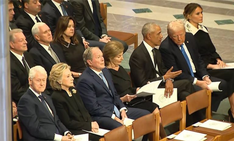 Durante el funeral, se vio conversar animosamente a Trump con Obama, que se sentaron juntos en la segunda fila, detrás de Biden y la primera dama, Jill Biden.