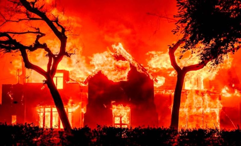 El fuego, impulsado por ráfagas de hasta 160 kilómetros por hora, arrasó hasta el momento con más de 15.344 hectáreas y destruyó más de 12.000 estructuras del área metropolitana de la ciudad.