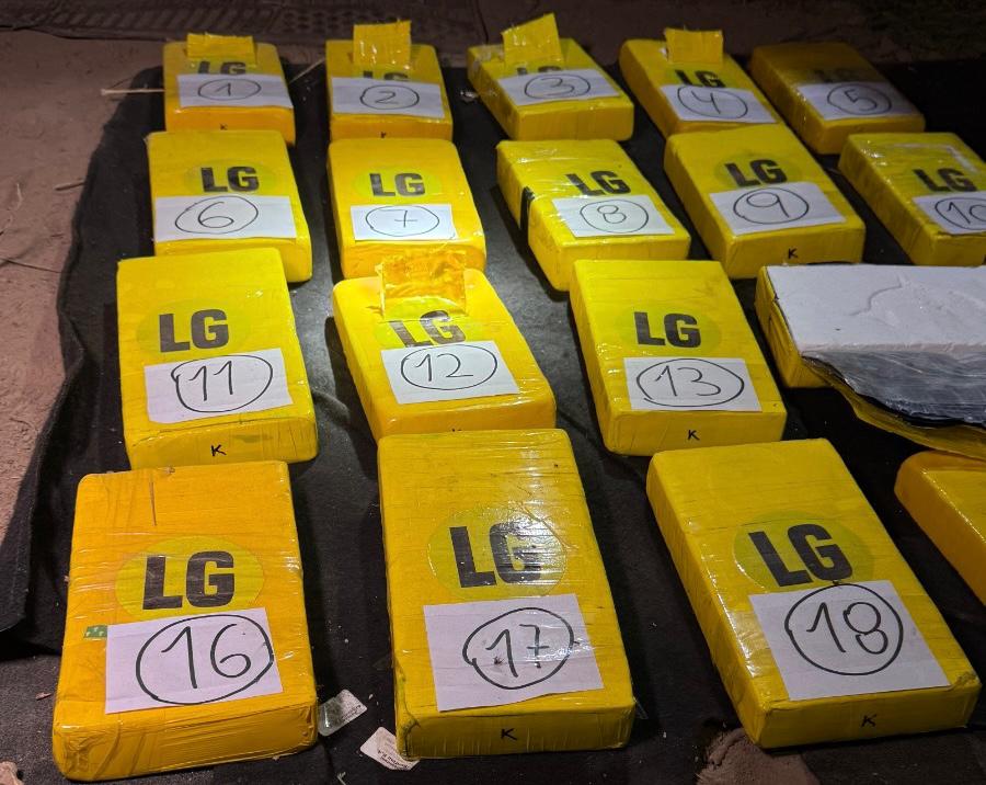 En presencia de los testigos, los agentes constataron que en el interior del automóvil había 21 panes amarillos, que al someterlos a prueba de campo dio resultado positivo a cocaína de máxima pureza, con un pesaje de más de 22 kilogramos.