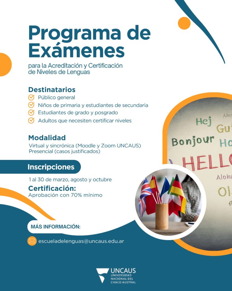 La Universidad Nacional del Chaco Austral (UNCAUS), presenta este nuevo programa, aprobado por Res. 325/24 – C.S., que busca satisfacer la creciente demanda de certificación de niveles de lenguas extranjeras en la provincia de Chaco, ofreciendo exámenes que evalúan las competencias lingüísticas de acuerdo al Marco Común Europeo de Referencia para las Lenguas (MCERL). La iniciativa se centra en la evaluación de habilidades comunicativas, incluyendo la comprensión y producción oral y escrita, así como la lectocomprensión de géneros discursivos académicos y profesionales.