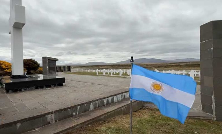 Al llegar al final del video, Díaz visitó el cementerio de Darwin, donde yacen los restos de los soldados argentinos caídos en el conflicto bélico de 1982.