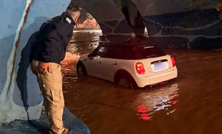 En medios de los operativos, la Policía debió rescatar a un hombre y una mujer que quedaron varados en sus respectivos vehículos, debido a la crecida del río en Costanera Sur.