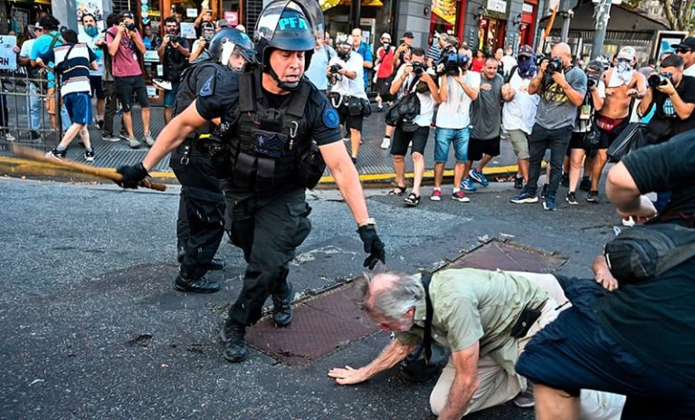 Los participantes expresaron su rechazo al accionar de la Policía Federal y la Policía de la Ciudad, que intervinieron con gases lacrimógenos, camiones hidrantes y balas de goma para dispersar la protesta.
