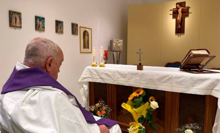El papa, de 88 años de edad, fue hospitalizado por una neumonía bilateral. Sobre ello, aseguró: «Nuestro físico está débil, pero, incluso así, nada puede impedirnos amar, rezar, entregarnos, estar los unos para los otros, en la fe, señales luminosas de esperanza».