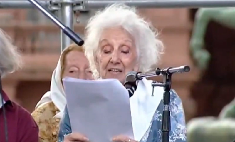 Carlotto también hizo referencia a la postura del Gobierno nacional, al que acusó de «humillar y no respetar» la lucha por la memoria.