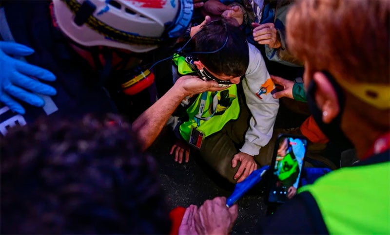“Es un hombre de unos 30 años con un traumatismo en la rodilla derecha: lo vamos a llevar por precaución al Hospital Ramos Mejía, es un golpe. No es grave. Lleven tranquilidad a su familia. Hay que esperar la placa para ver, pero no amerita gravedad”, detalló Alberto Crescenti, titular del SAME, en referencia al periodista que debió ser asistido.