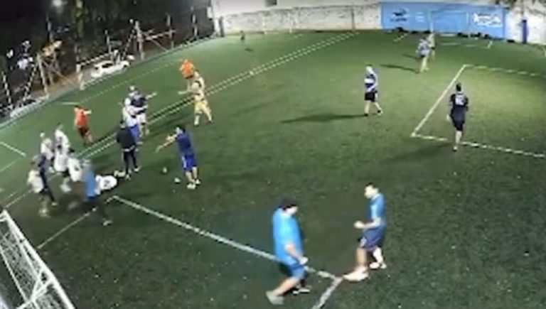 Los insultos fueron correspondidos, entonces los barras decidieron dar la vuelta, ingresar al complejo de canchas y atacar directamente a quienes estaban pasando un momento de esparcimiento. Entraron con palos para agredir.