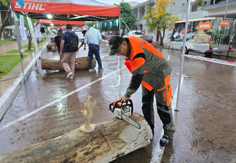 A pesar de la lluvia, en la mañana del viernes inició la edición 2025 del Encuentro Internacional de Escultores en la plaza San Martín.