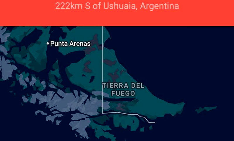 De acuerdo con el Servicio Geológico de los Estados Unidos (USGS), que registra la actividad sísmica en todo el mundo, un temblor de magnitud de 7,4 sacudió las aguas entre el sur de Chile y la Argentina, con una profundidad de 10 kilómetros.