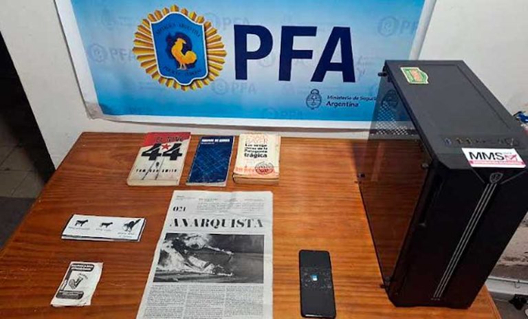 En el lugar, los efectivos secuestraron una bomba molotov, bibliografía con contenido anarquista, panfletos y material con consignas antisistémicas. Ante la gravedad del caso, tomó intervención la Unidad de Investigación Antiterrorista.