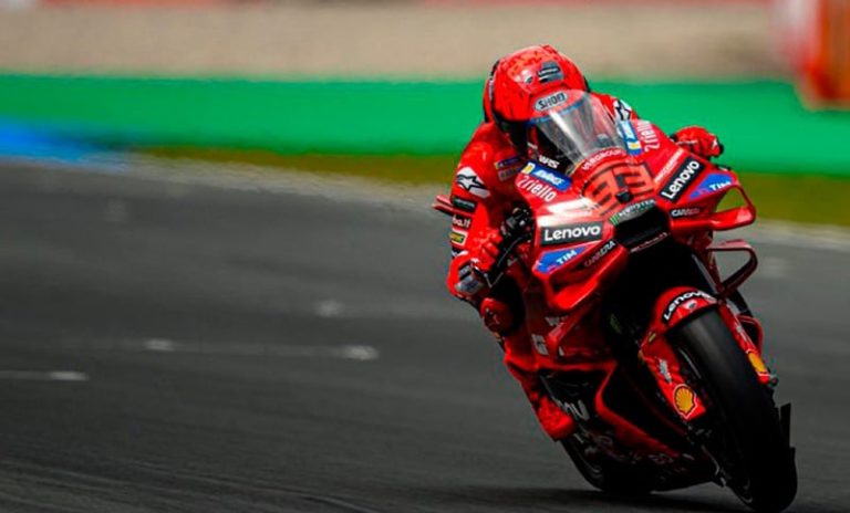 El español Marc Márquez (Ducati) volvió a demostrar hoy su dominio en MotoGP con una contundente victoria en el Gran Premio de los Países Bajos, disputado en el circuito de Assen.