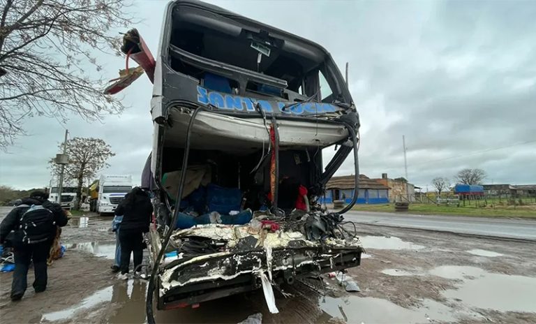 Según los peritajes preliminares, el camión habría colisionado contra la parte trasera del colectivo, que terminó desplazado más de 500 metros fuera de la calzada. Se investiga si el chofer del camión se durmió al volante.