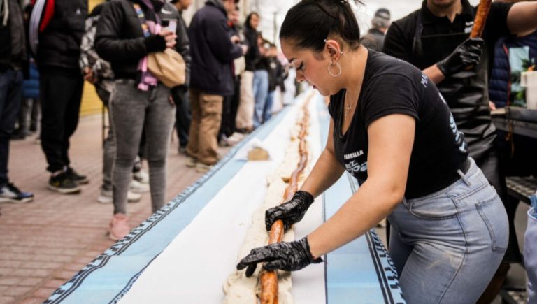 Para hacerlo se usaron, 350 kilos de chorizo, 300 panes de un metro, 120 kilos de salsa criolla y todo el esfuerzo de un equipo de más de 100 personas trabajando juntas para lograr el objetivo. Todos estuvieron a las órdenes de los dueños de «El Pa», la parrilla que hoy es sensación en redes sociales.