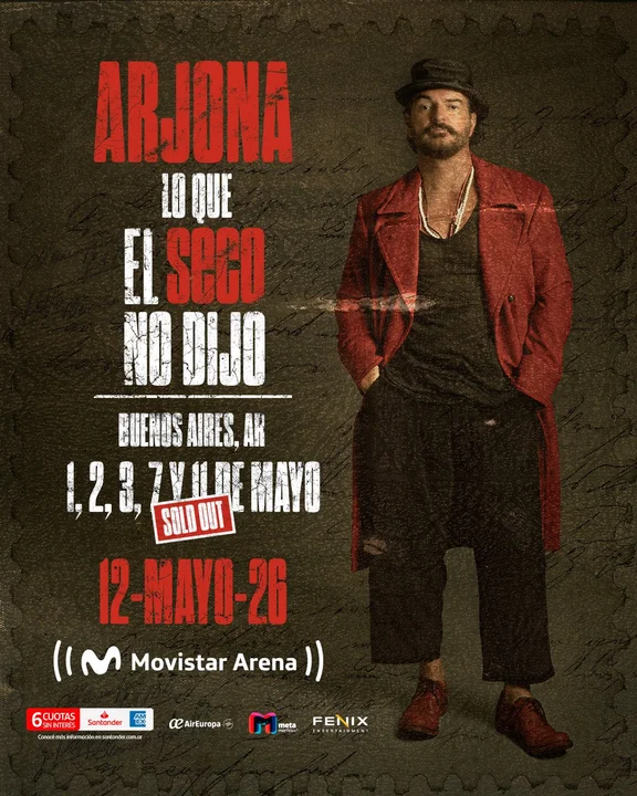 El cantante guatemalteco Ricardo Arjona atraviesa un nuevo récord en su carrera musical: desde que se anunciaron sus shows en Argentina y hasta el momento, alcanzó cinco sold outs y sumó una nueva función para el próximo 12 de mayo de 2026, en el estadio Movistar Arena.