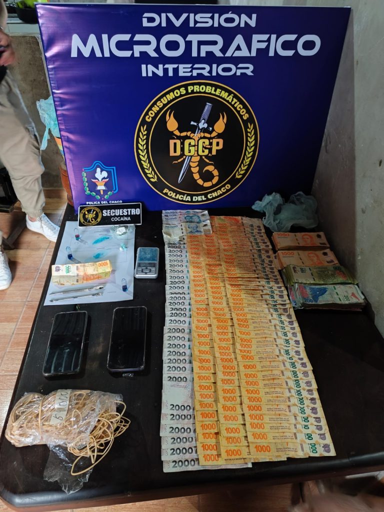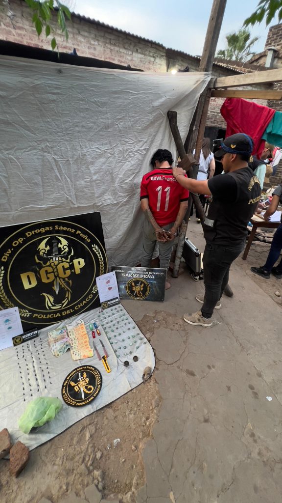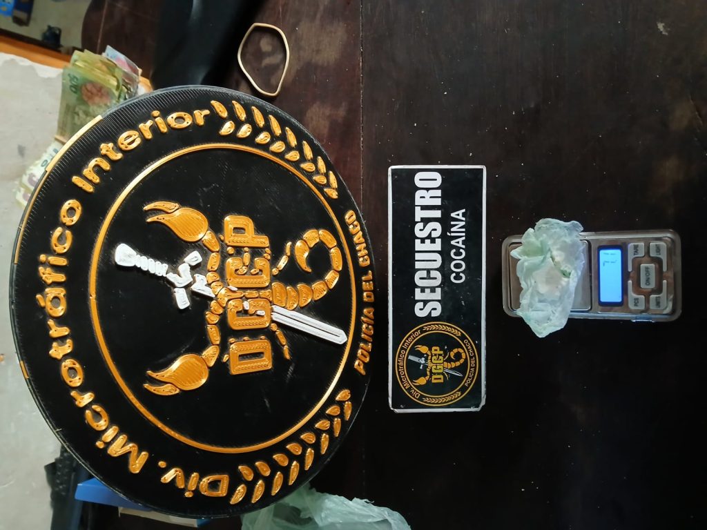 En un inmueble identificado como uno de los puntos principales de la investigación, personal de la División Operaciones Droga Interior Sáenz Peña detuvo a D.V., de 33 años, y secuestró: