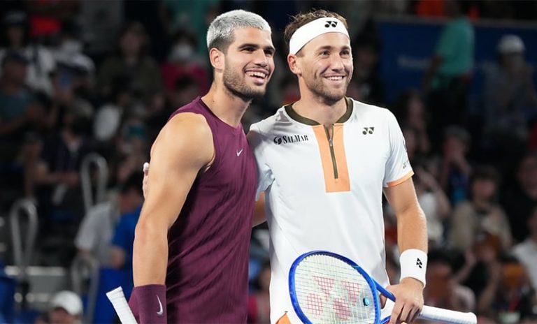 El tenista Carlos Alcaraz volvió a demostrar que es el mejor jugador del momento y selló su clasificación a la final del ATP de Tokio tras vencer en una dura batalla a Casper Ruud por 3-6, 6-3 y 6-4.