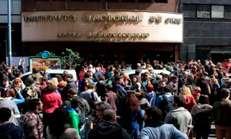 El sector audiovisual se manifestó frente a la sede central del Instituto Nacional de Cine en rechazo a los recortes y privatizaciones