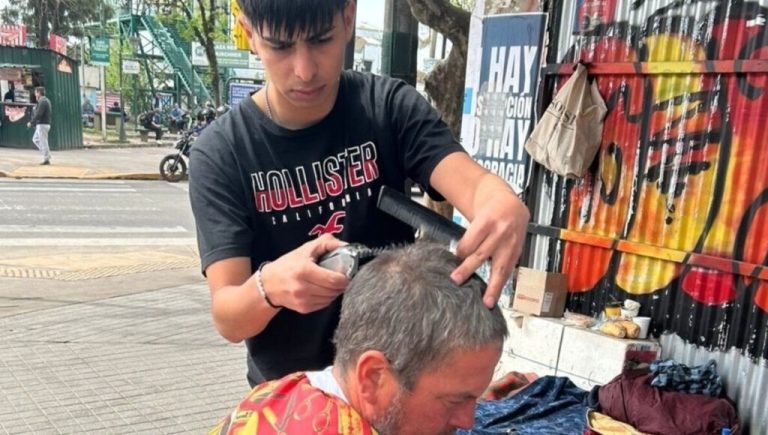La de Brandon Correa (20) es una de esas historias de solidaridad que merecen destacarse. Este joven vecino de Merlo, dueño de su propia barbería desde 2022, decidió recorrer su barrio para cortarle el pelo a gente de la calle. “Me motiva el cariño que recibo”, explicó, con humildad.