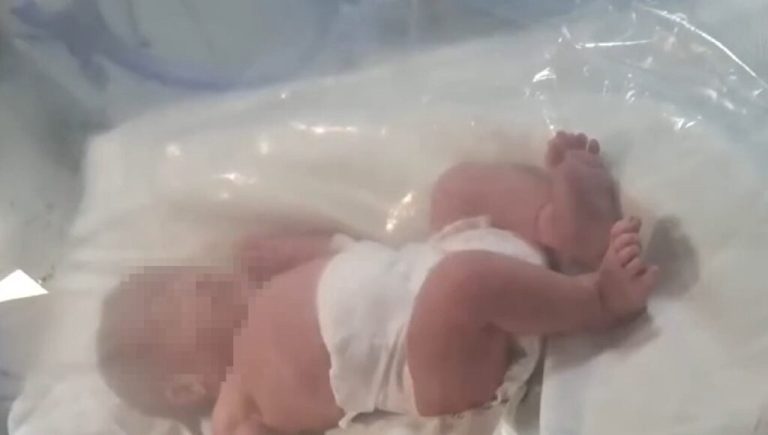 Una beba en un tacho, aún con cordón umbilical