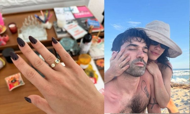 Por las imágenes que la artista compartió en sus redes, donde ambos se ven mojados y con dos copas de vino, pareciera ser que la propuesta ocurrió en la playa.