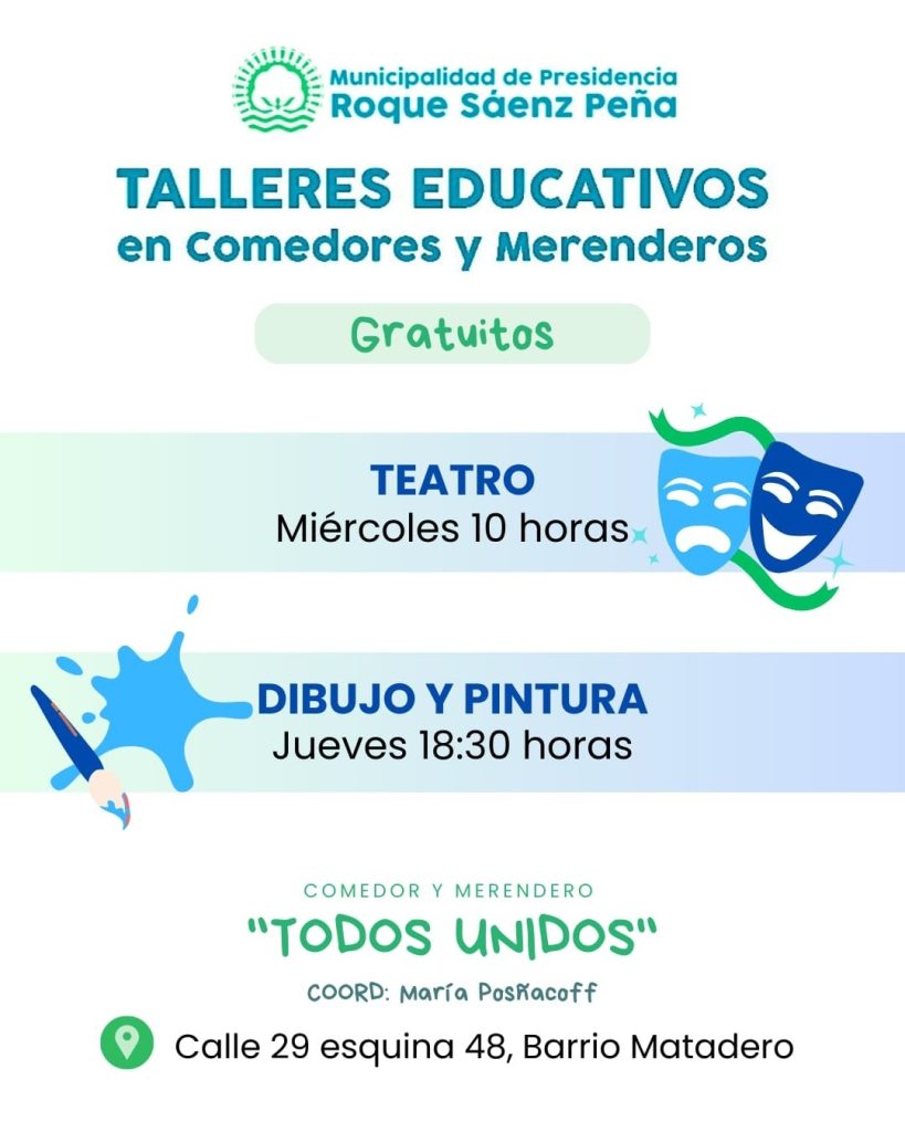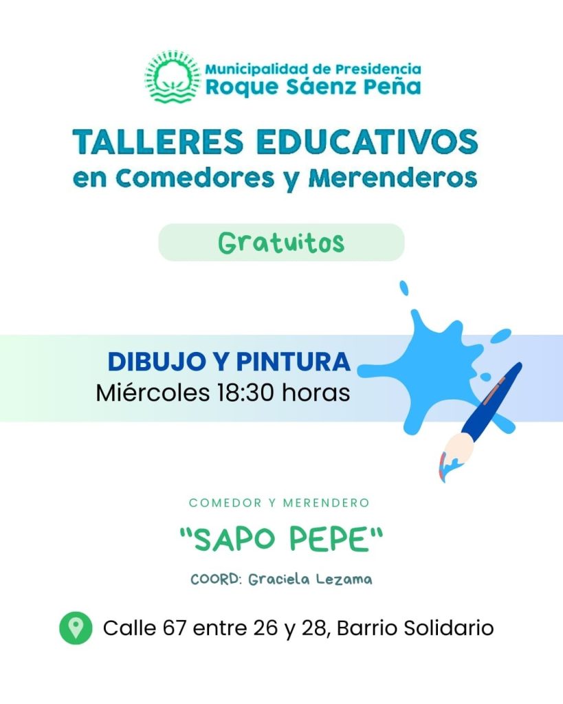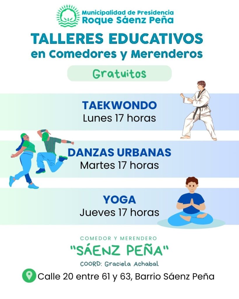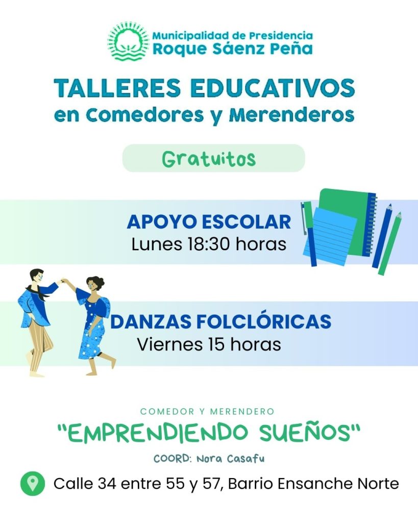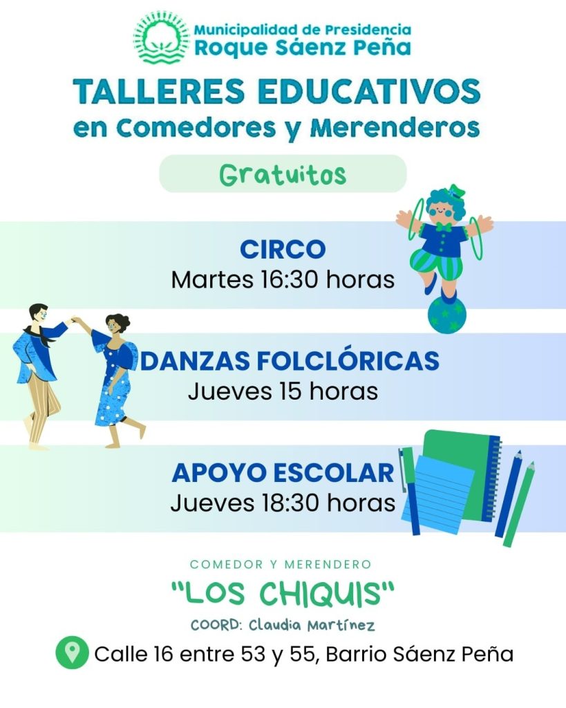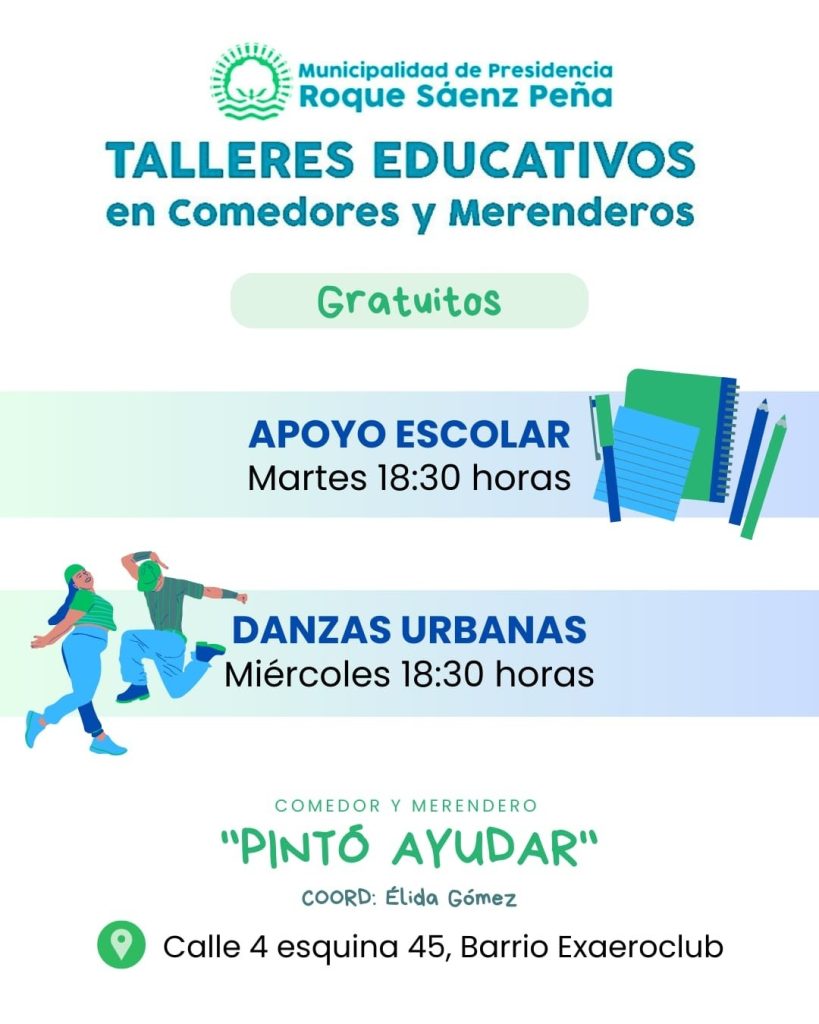 La Municipalidad de Presidencia Roque Sáenz Peña lleva adelante una propuesta de talleres educativos gratuitos en distintos comedores y merenderos de la ciudad, con el objetivo de brindar espacios de aprendizaje, recreación y contención para niños, jóvenes y vecinos de distintos barrios.
