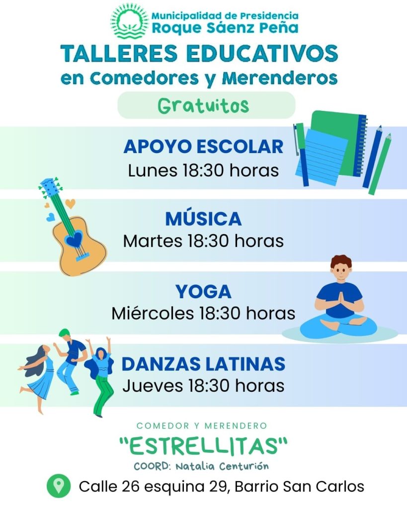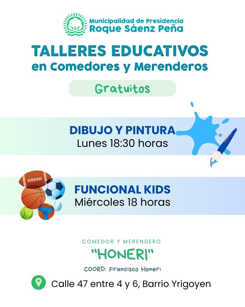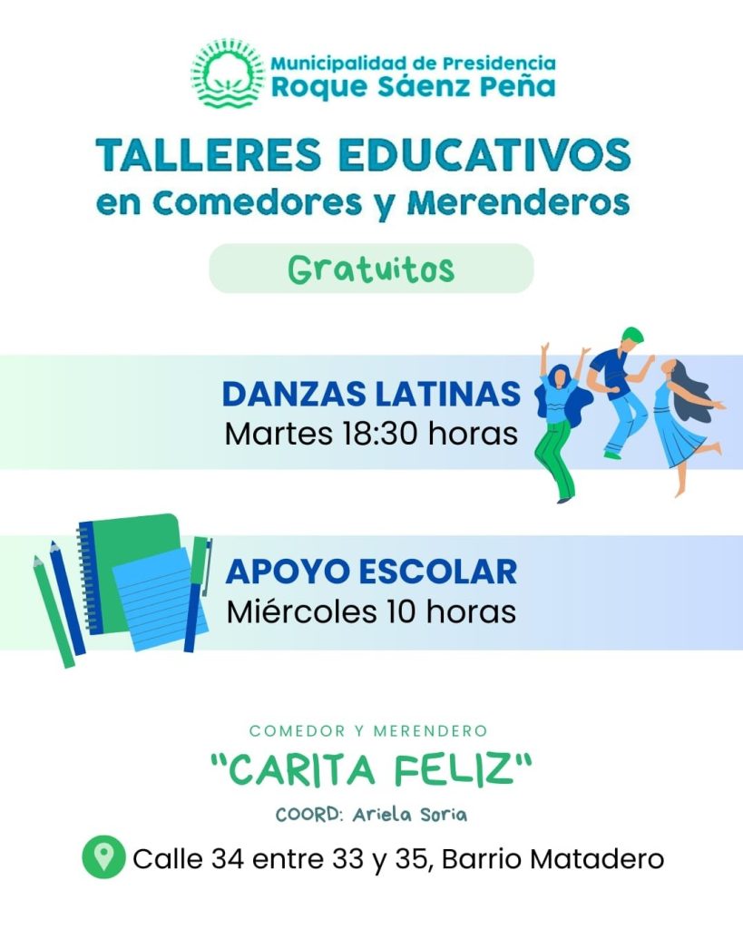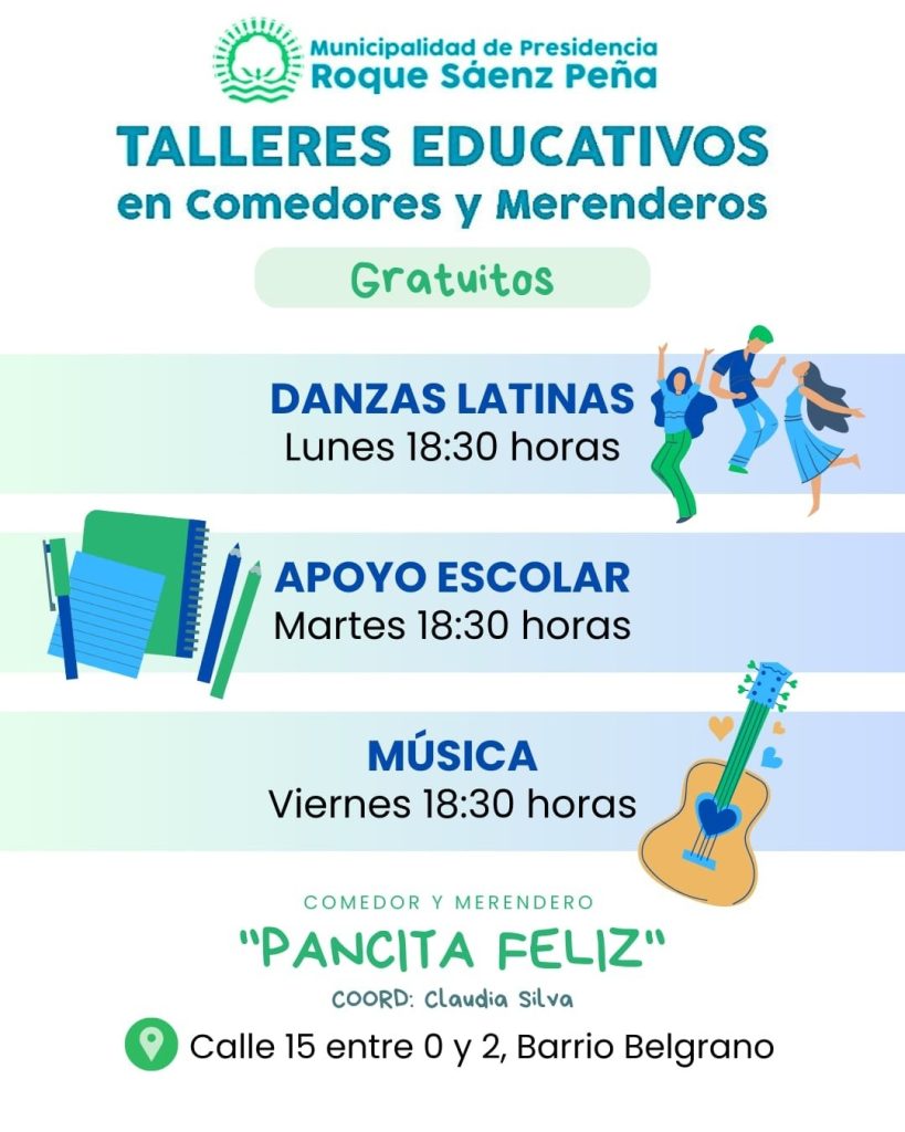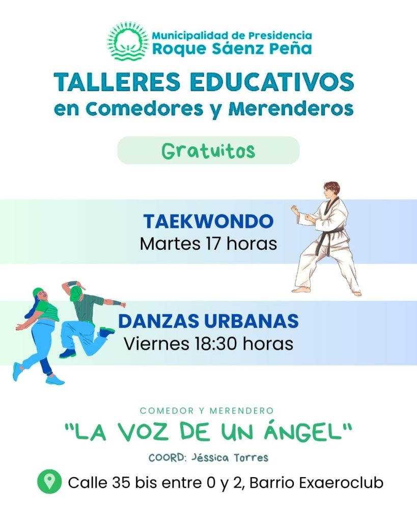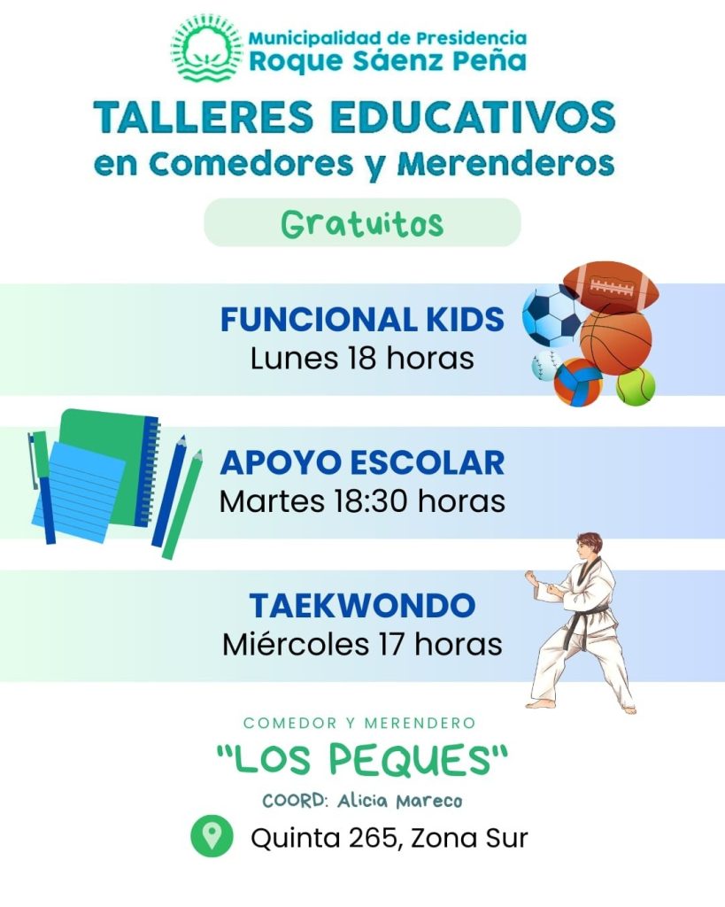 La Municipalidad de Presidencia Roque Sáenz Peña lleva adelante una propuesta de talleres educativos gratuitos en distintos comedores y merenderos de la ciudad, con el objetivo de brindar espacios de aprendizaje, recreación y contención para niños, jóvenes y vecinos de distintos barrios.