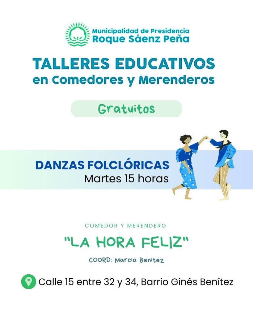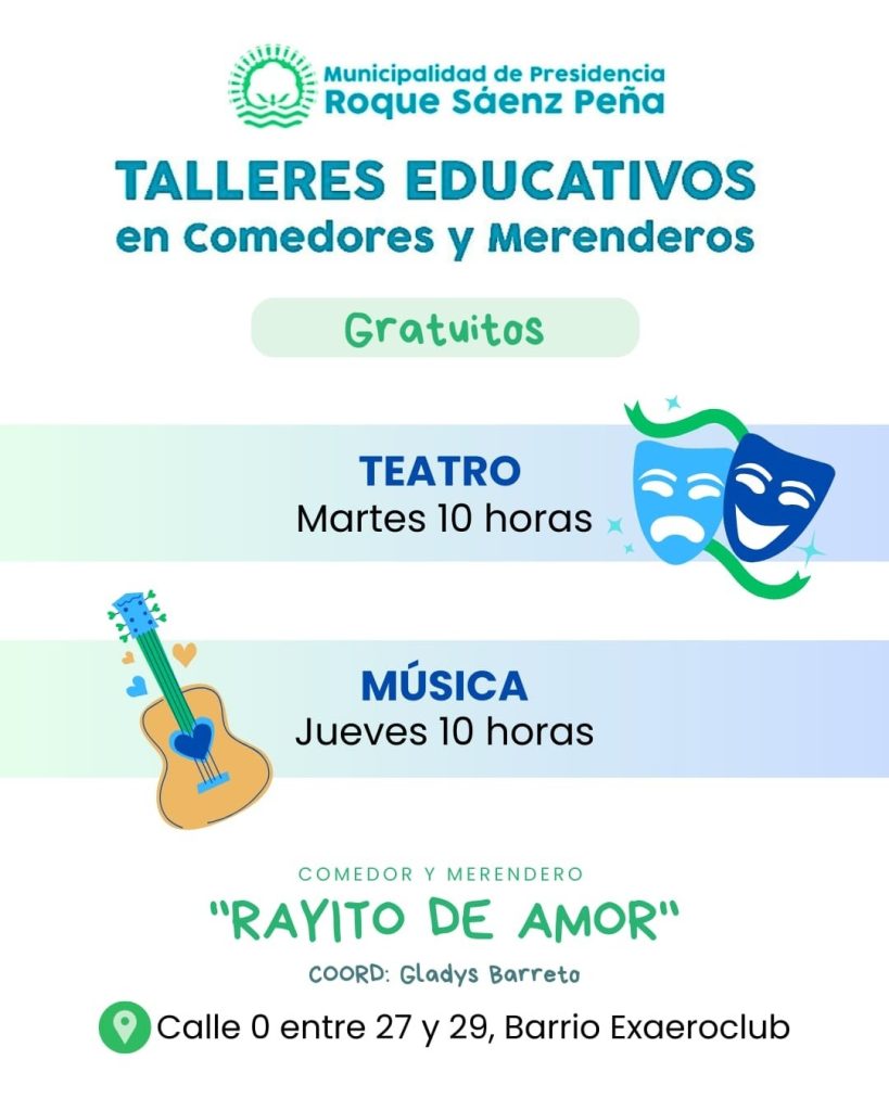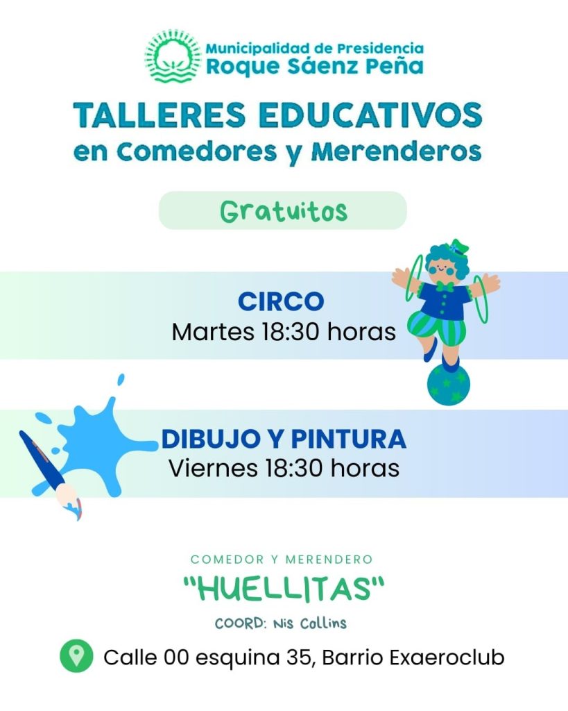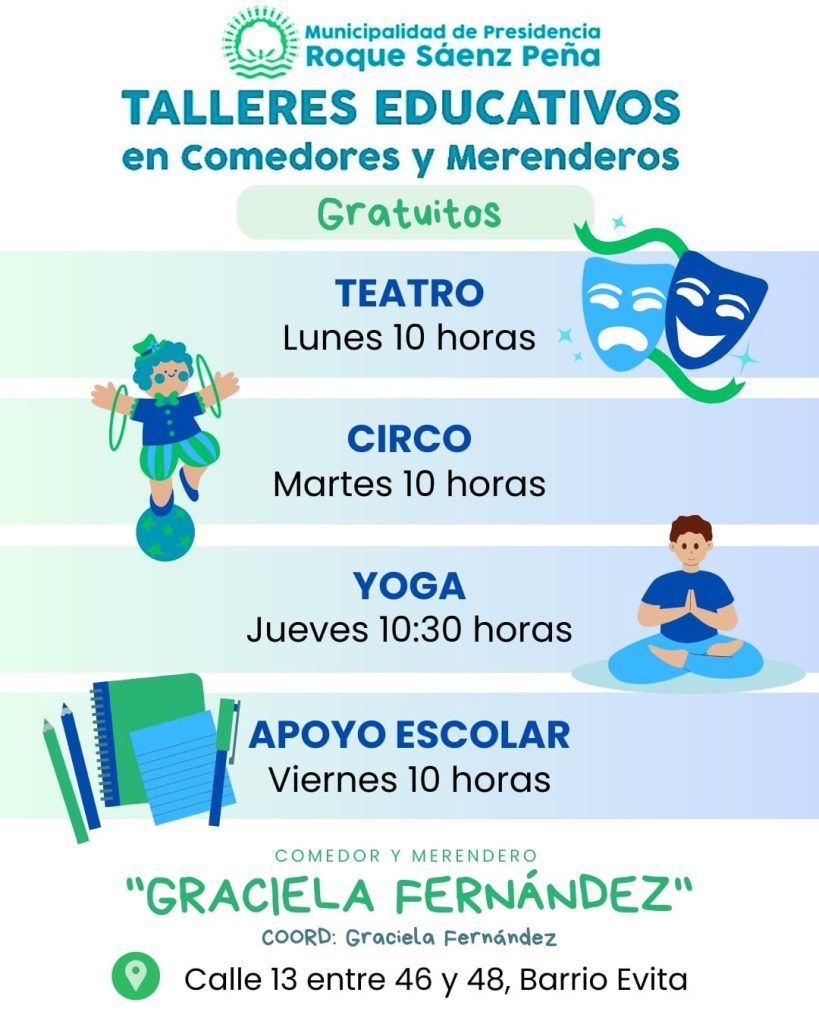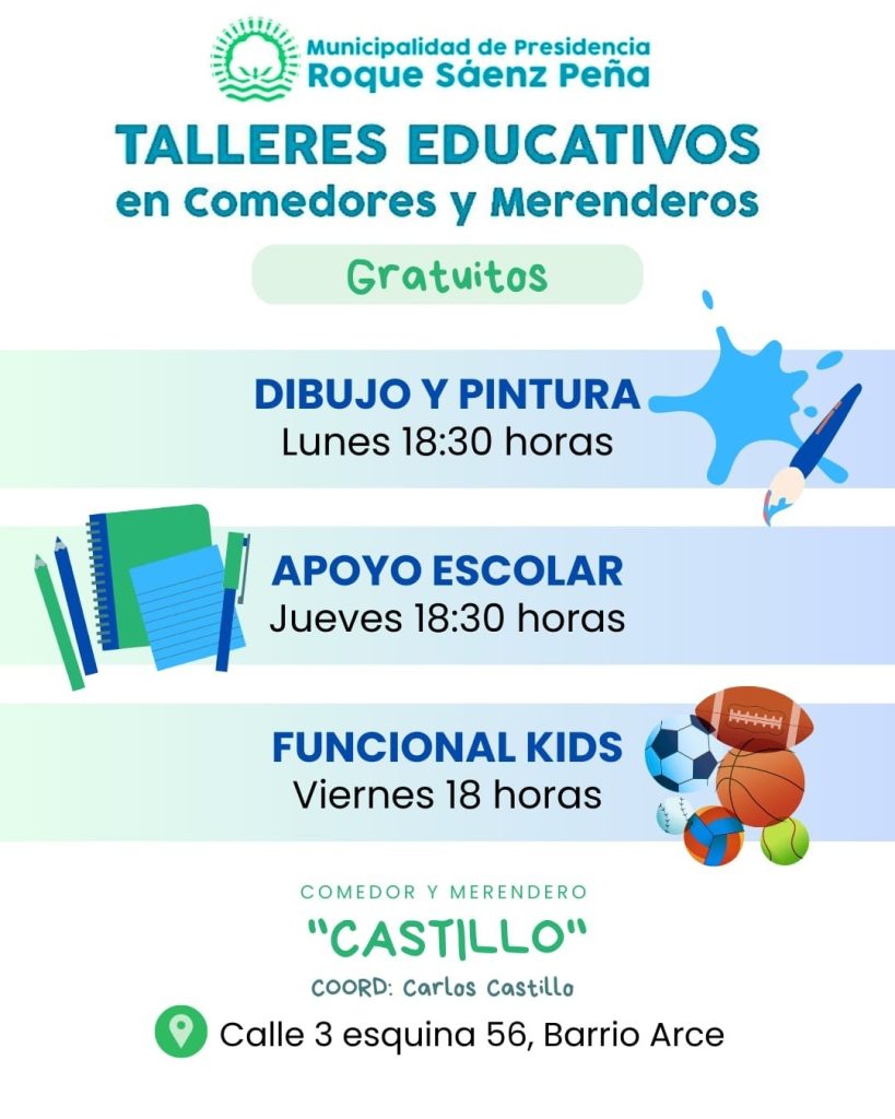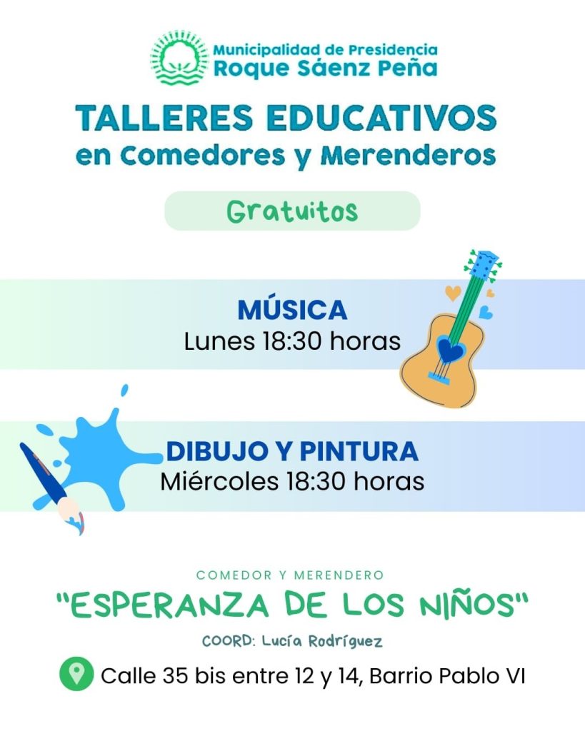 La Municipalidad de Presidencia Roque Sáenz Peña lleva adelante una propuesta de talleres educativos gratuitos en distintos comedores y merenderos de la ciudad, con el objetivo de brindar espacios de aprendizaje, recreación y contención para niños, jóvenes y vecinos de distintos barrios.