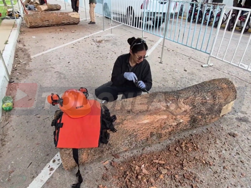 La artista comentó que, si bien llega con una idea previa, el proceso creativo también depende del material disponible. “Uno trae una idea, pero tiene que adaptarla al tronco”, señaló.